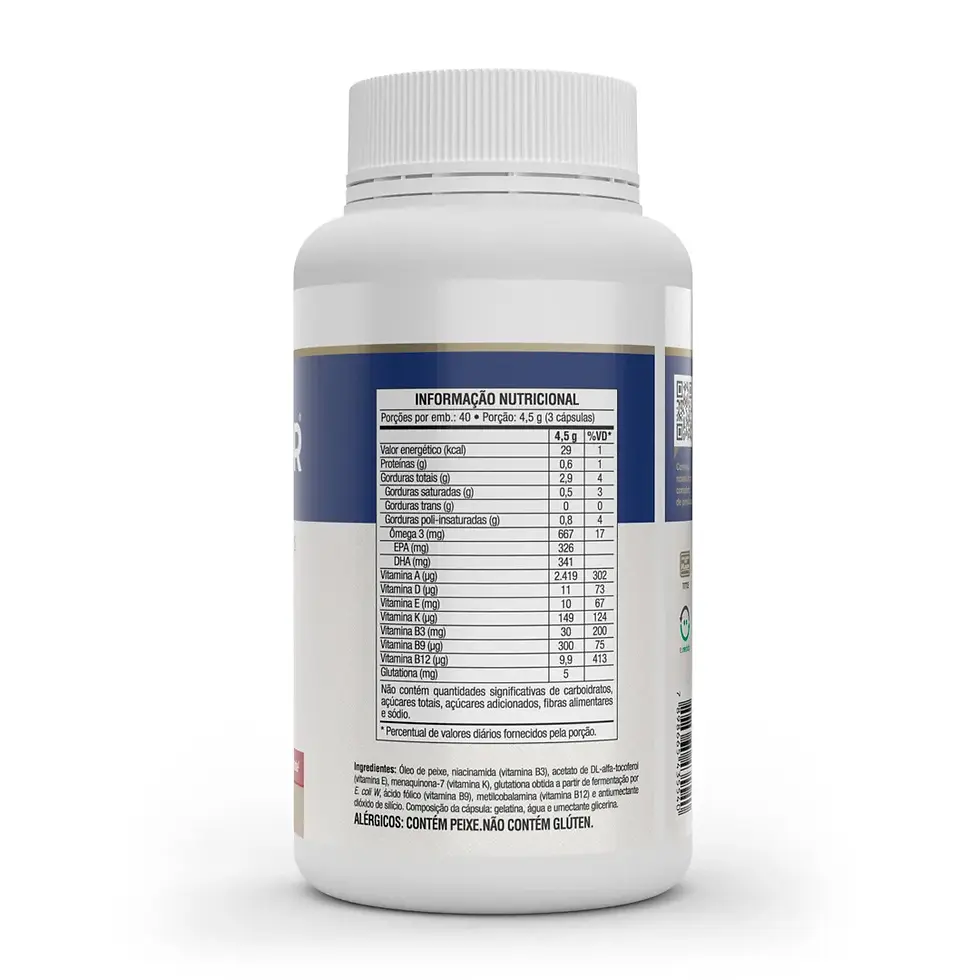 Os suplementos de ômega são recomendados para melhorar a saúde cardiovascular, cerebral, articular e ocular.