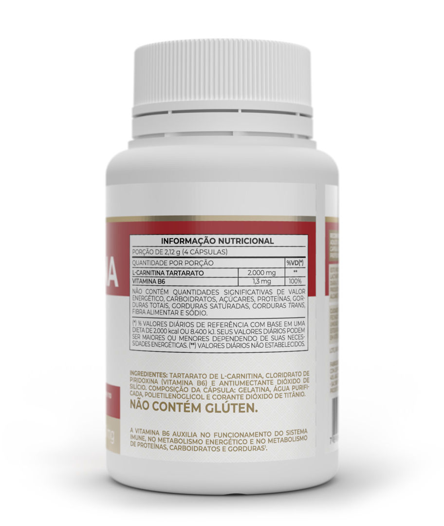 L-CARNITINA é um suplemento alimentar de L-carnitina e vitamina B6. A vitamina B6 auxilia no funcionamento do sistema imune, no metabolismo energético e no metabolismo de proteínas, carboidratos e gorduras.